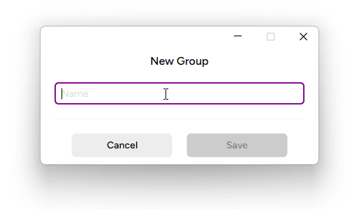 Click the More button and select the ‘New Group’ option. A dialog window will open, allowing you to name your new group.